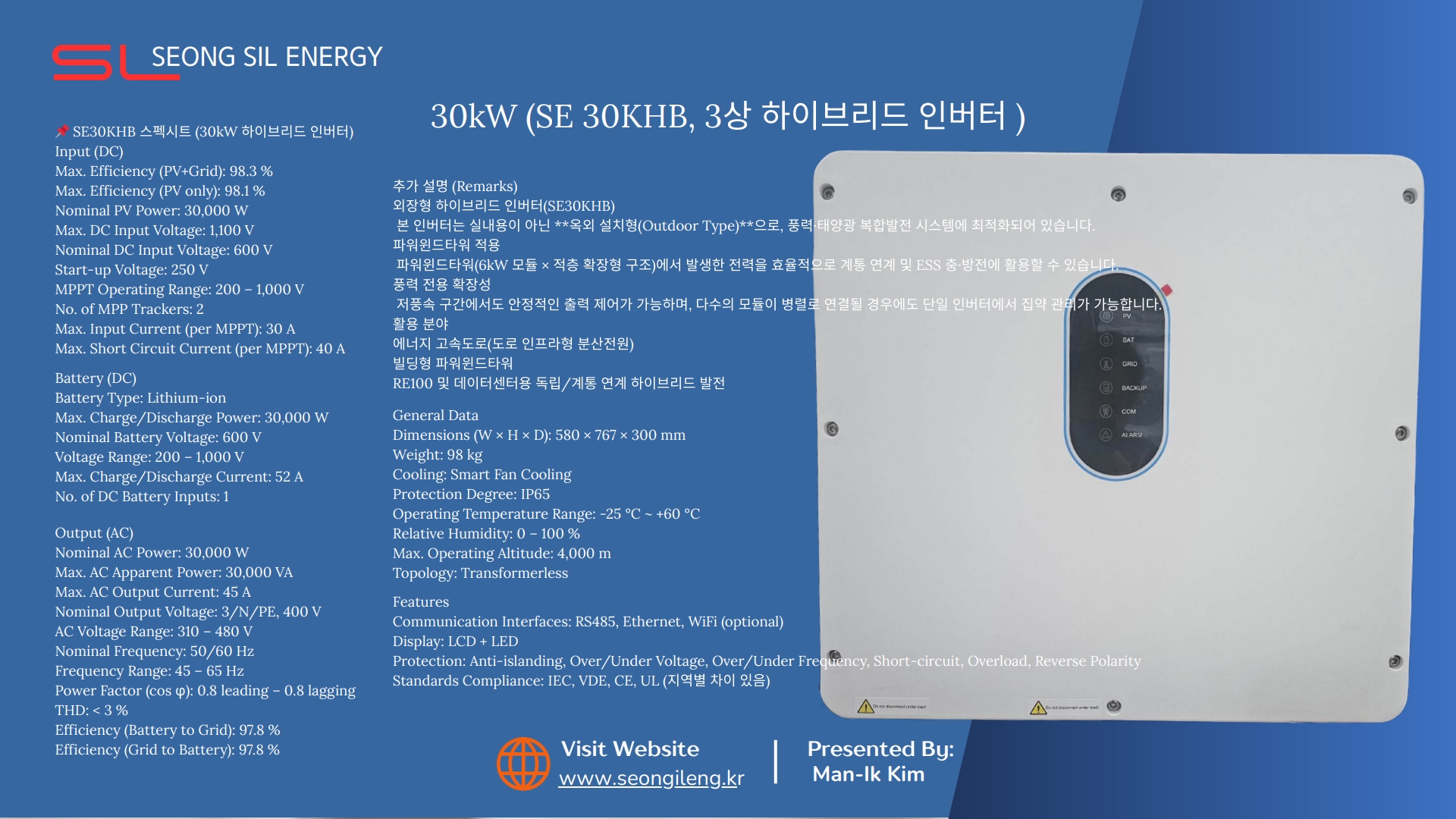 HOME LOGIN JOIN Toggle navigation About Us About Us Products Urban Hydrogen Wind Hybrid Tower Energy Highway Wind Turbine Wind Generator One-Code Inverter ess 소개 가정용 ess 가정용 상업용 배터리 벽걸이형 하이브리드 발전기 2차전지 AA Gallery Gallery Online Consultation Online Consultation Customer Service Notice Customer Service 상담신청 SMS 문자상담 문자상담 주시면친절히 안내해 드립니다 연락처 빠른상담 요청합니다. 0 /60 Byte 자동 신청방지 태그 [약관보기] 수집약관동의 Seongil Energy Co., Ltd. (이하 회사는) 고객님의 개인정보를 중요시하며, "정보통신망 이용촉진 및 정보보호"에 관한 법률을 준수하고 있습니다.회사는 개인정보취급방침을 통하여 고객님께서 제공하시는 개인정보가 어떠한 용도와 방식으로 이용되고 있으며, 개인정보보호를 위해 어떠한 조치가 취해지고 있는지 알려드립니다. 회사는 개인정보취급방침을 개정하는 경우 웹사이트 공지사항(또는 개별공지)을 통하여 공지할 것입니다.ο 본 방침은 : 2023년 09월 18일부터 시행됩니다.1. 수집하는 개인정보 항목회사는 회원가입, 상담, 서비스 신청 등등을 위해 아래와 같은 개인정보를 수집하고 있습니다.- 수집항목 : 이름 , 생년월일 , 성별 , 로그인ID , 비밀번호 , 비밀번호 질문과 답변 , 자택 전화번호 , 자택 주소 , 휴대전화번호 , 이메일 , 쿠키 , 결제기록- 개인정보 수집방법 : 홈페이지(회원가입)2. 개인정보의 수집 및 이용목적회사는 수집한 개인정보를 다음의 목적을 위해 활용합니다.- 서비스 제공에 관한 계약 이행 및 서비스 제공에 따른 요금정산콘텐츠 제공 , 구매 및 요금 결제 , 물품배송 또는 청구지 등 발송 , 금융거래 본인 인증 및 금융 서비스- 회원 관리회원제 서비스 이용에 따른 본인확인 , 개인 식별 , 불량회원의 부정 이용 방지와 비인가 사용 방지 , 가입 의사 확인 , 연령확인 , 불만처리 등 민원처리 , 고지사항 전달- 마케팅 및 광고에 활용이벤트 등 광고성 정보 전달 , 접속 빈도 파악 또는 회원의 서비스 이용에 대한 통계3. 개인정보의 보유 및 이용기간원칙적으로, 개인정보 수집 및 이용목적이 달성된 후에는 해당 정보를 지체 없이 파기합니다. 단, 관계법령의 규정에 의하여 보존할 필요가 있는 경우 회사는 아래와 같이 관계법령에서 정한 일정한 기간 동안 회원정보를 보관합니다. - 보존 항목 : 결제기록 - 보존 근거 : 계약 또는 청약철회 등에 관한 기록 - 보존 기간 : 3년계약 또는 청약철회 등에 관한 기록 : 5년 (전자상거래등에서의 소비자보호에 관한 법률)대금결제 및 재화 등의 공급에 관한 기록 : 5년 (전자상거래등에서의 소비자보호에 관한 법률)소비자의 불만 또는 분쟁처리에 관한 기록 : 3년 (전자상거래등에서의 소비자보호에 관한 법률)4. 개인정보의 파기절차 및 방법회사는 원칙적으로 개인정보 수집 및 이용목적이 달성된 후에는 해당 정보를 지체없이 파기합니다. 파기절차 및 방법은 다음과 같습니다. - 파기절차회원님이 회원가입 등을 위해 입력하신 정보는 목적이 달성된 후 별도의 DB로 옮겨져(종이의 경우 별도의 서류함) 내부 방침 및 기타 관련 법령에 의한 정보보호 사유에 따라(보유 및 이용기간 참조) 일정 기간 저장된 후 파기되어집니다.별도 DB로 옮겨진 개인정보는 법률에 의한 경우가 아니고서는 보유되어지는 이외의 다른 목적으로 이용되지 않습니다.- 파기방법 전자적 파일형태로 저장된 개인정보는 기록을 재생할 수 없는 기술적 방법을 사용하여 삭제합니다.5. 이용자 및 법정대리인의 권리와 그 행사방법이용자는 언제든지 등록되어 있는 자신의 개인정보를 조회하거나 수정할 수 있으며 가입해지를 요청할 수도 있습니다. 이용자들의 개인정보 조회,수정을 위해서는 ‘개인정보변경’(또는 ‘회원정보수정’ 등)을 가입해지(동의철회)를 위해서는 “회원탈퇴”를 클릭하여 본인 확인 절차를 거치신 후 직접 열람, 정정 또는 탈퇴가 가능합니다.혹은 개인정보관리책임자에게 서면, 전화 또는 이메일로 연락하시면 지체없이 조치하겠습니다. 귀하가 개인정보의 오류에 대한 정정을 요청하신 경우에는 정정을 완료하기 전까지 당해 개인정보를 이용 또는 제공하지 않습니다. 또한 잘못된 개인정보를 제3자에게 이미 제공한 경우에는 정정 처리결과를 제3자에게 지체없이 통지하여 정정이 이루어지도록 하겠습니다. 회사는 이용자의 요청에 의해 해지 또는 삭제된 개인정보는 “회사가 수집하는 개인정보의 보유 및 이용기간”에 명시된 바에 따라 처리하고 그 외의 용도로 열람 또는 이용할 수 없도록 처리하고 있습니다.6. 개인정보 자동수집 장치의 설치, 운영 및 그 거부에 관한 사항회사는 귀하의 정보를 수시로 저장하고 찾아내는 ‘쿠키(cookie)’ 등을 운용합니다. 쿠키란 웹사이트를 운영하는데 이용되는 서버가 귀하의 브라우저에 보내는 아주 작은 텍스트 파일로서 귀하의 컴퓨터 하드디스크에 저장됩니다. 회사은(는) 다음과 같은 목적을 위해 쿠키를 사용합니다.7. 쿠키 등 사용 목적- 회원과 비회원의 접속 빈도나 방문 시간 등을 분석, 이용자의 취향과 관심분야를 파악 및 자취 추적, 각종 이벤트 참여 정도 및 방문 회수 파악 등을 통